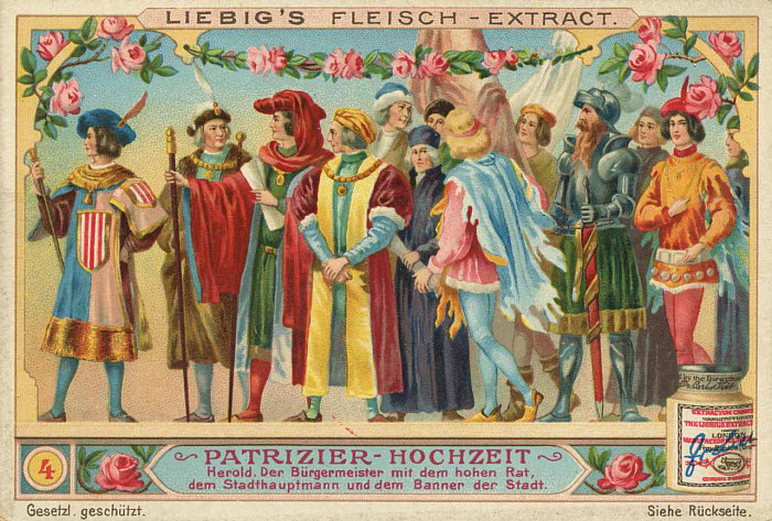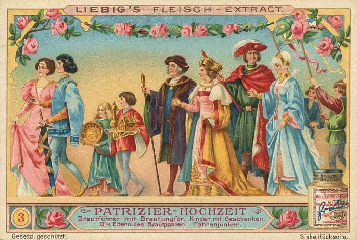 Heute lernen wir auf sehr farbenprächtige Weise, was alles zu der Hochzeit eines Patriziers (vornehmer, wohlhabender Bürger) gehört. [Kommentieren]