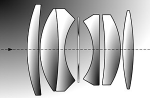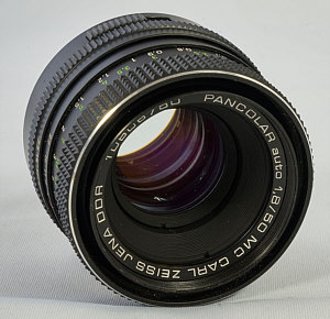 Das ist ein Spinnennetz mit Tautropfen, gemacht mit dem Pancolar und in