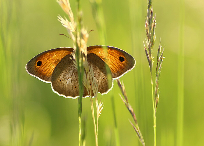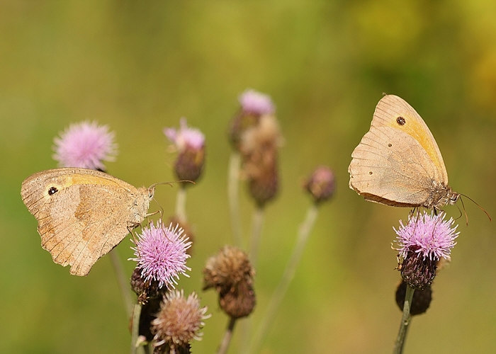 Die Falter besuchen gerne Blüten und die Raupen leben an Gräsern.