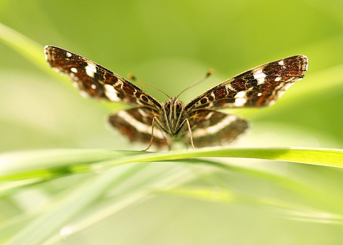 Die Unterseite des Falters mit charakteristischem Linien- und Fleckenmuster