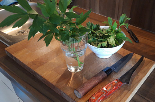 Suppengrün waschen, in Daumenlänge schnippeln.