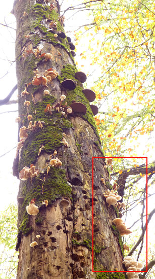 Gestern fotografiert ... das sind Pilze, die an einem Baum wachsen. Ich stand am Baum und hab nach oben fotografiert. Das war ein toter Baumstamm, der ziemlich hoch war: Im roten Bereich war das Fotomotiv zu finden. [Kommentieren]