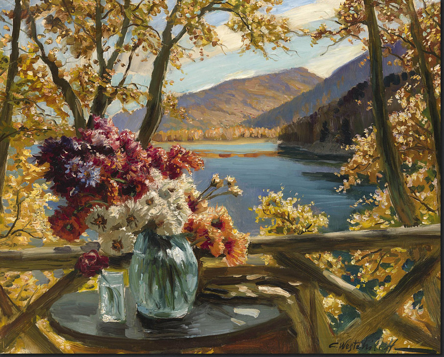 Constantin Westchiloff (russisch-amerikanisch) (1878–1945) - Stillleben auf einer Terrasse Deine Gedanken zu diesem Bild ? [Kommentieren]