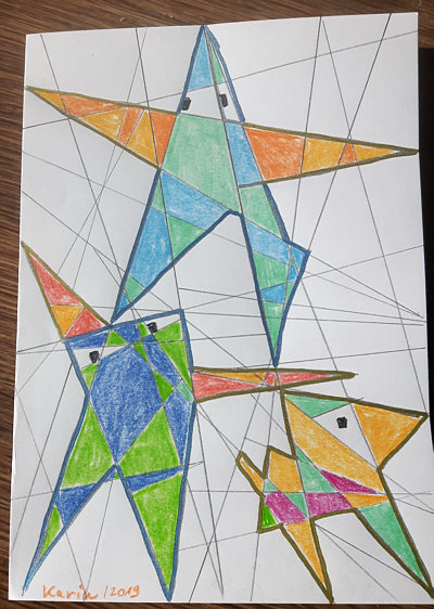 Die werden mit Buntstiften ausgemalt.