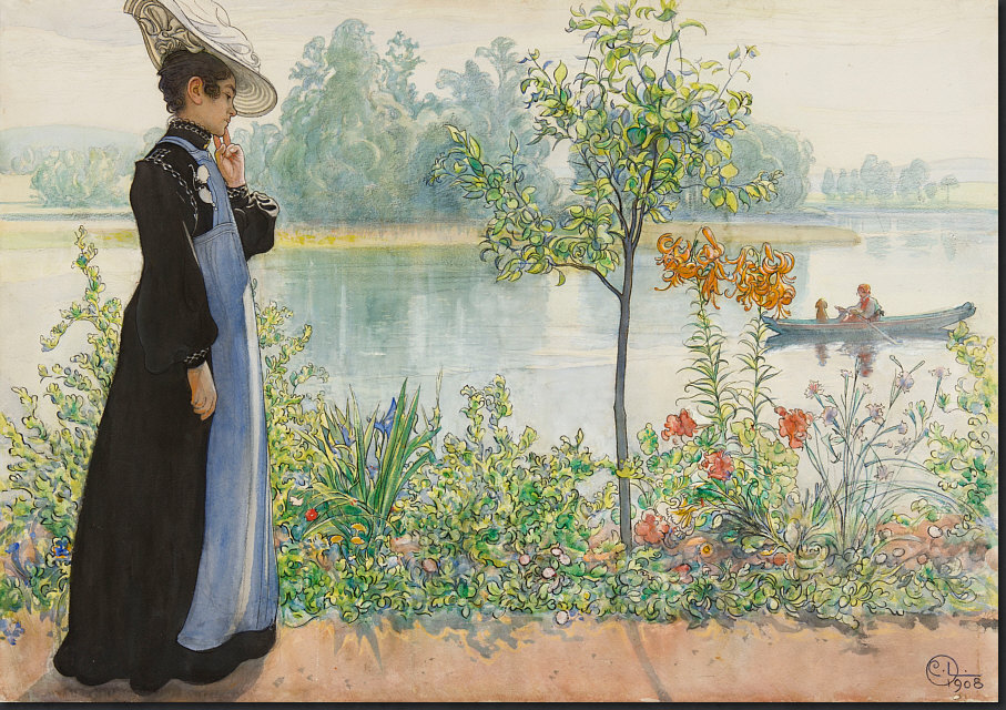 Carl Larsson (Schweden) (1853–1919) - "Karin am Ufer" - Wasserfarben auf Papier - 75x54 cm Deine Gedanken zu diesem Bild ? [Kommentieren]
