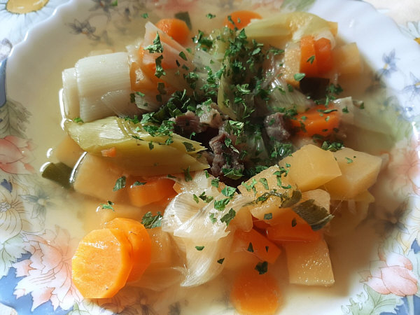 Kärntner Ritschert (Graupen-Bohnen-Eintopf mit Pökelfleisch)