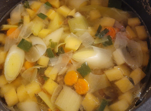 Suppe mit Spätzle - Gebackene Kartoffeln / Käse mit Schnittlauchrahm/Kartoffeln