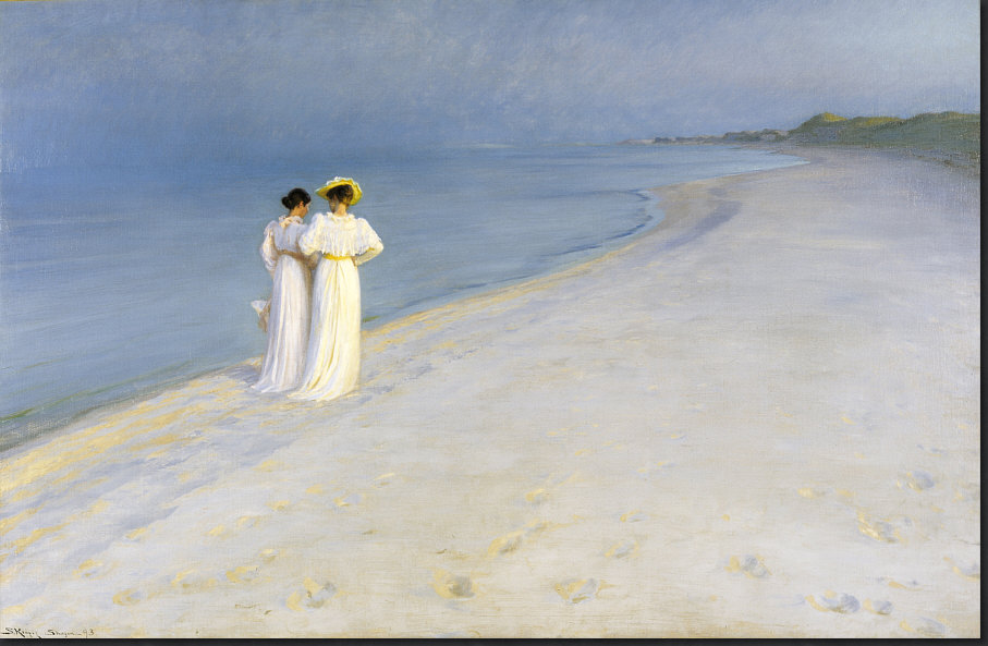 Peder Severin Krøyer (norwegisch-dänisch) (1851–1909) - "Sommerabend am Skagener Südstrand" Deine Gedanken zu diesem Bild ? [Kommentieren]