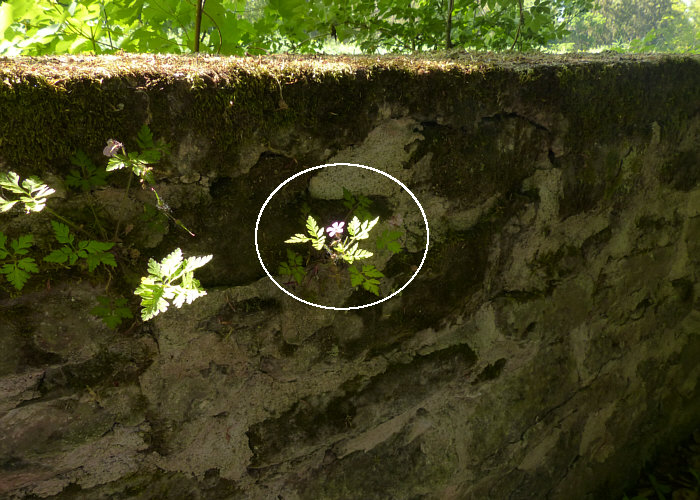 Das ist ein "Wald-Storchschnabel", der an dieser Mauer wächst: