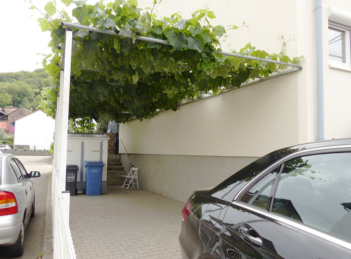 Die Trauben sind noch grün ... ... das besondere ist, "wo" sie zu finden sind: Die Trauben sind die Überdachung eines Carports. [Kommentieren]
