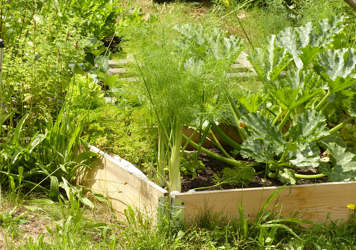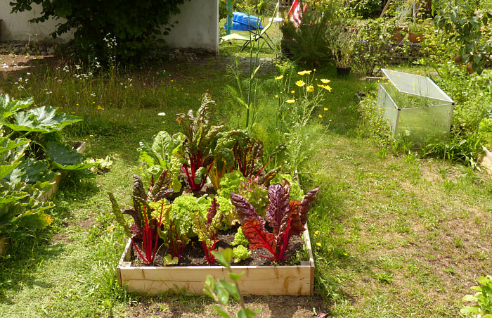 Ein kleiner Gemüsegarten mit Mangold, Salat und Fenchel. Hier noch ein kleiner Gemüsegarten mit gelben Zucchini. Das ist ein Rasen und auf diesem stehen verschiedene ... ... solcher kleinen Gärten: [Kommentieren]