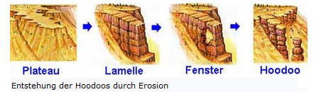 Die Hoodoos, diese Felspyramiden, sind so entstanden: