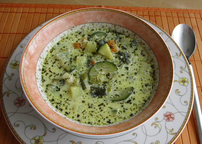 Erdäpfel-Sellerie-Suppe mit Pesto