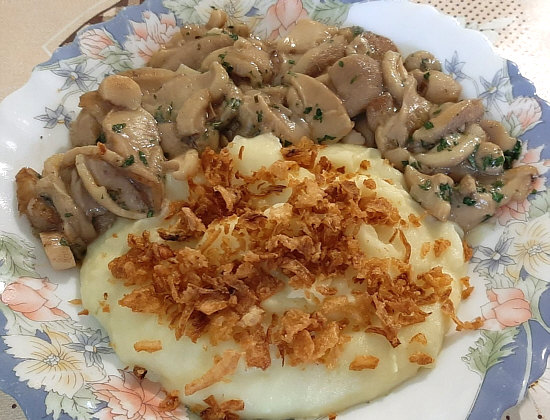 Schleimchen, Kartoffelbrei mit Röstzwiebeln
