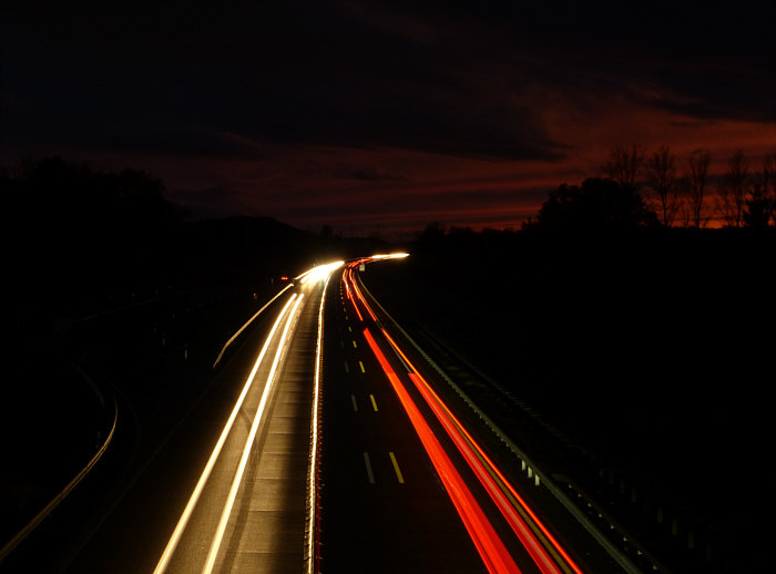In der Dämmerung auf der Autobahnbrücke stehen und die Lichter fotografieren. Und in der Ferne schimmert noch ... ... das Abendrot. [Kommentieren]