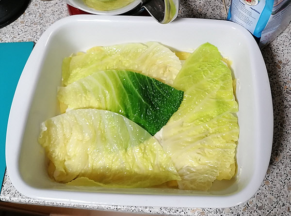 (evtl. mal ein Eckchen Wirsing probieren ob er schön weich geworden ist)