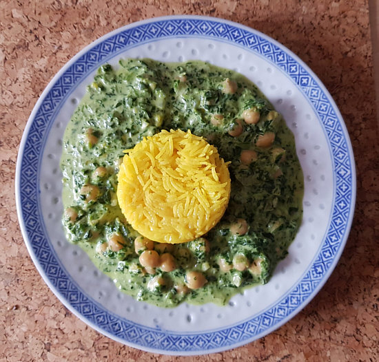Dazu schmeckt Basmatireis (dem ich mit Kurkuma etwas Farbe gegeben habe).