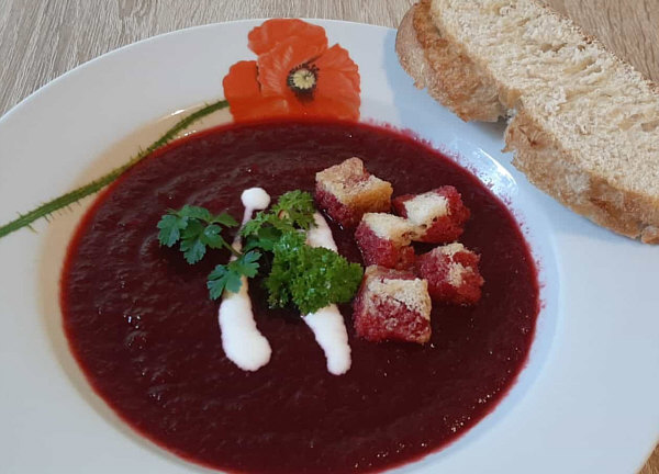 Pastinaken-Cremesuppe mit Rote Bete-Chips