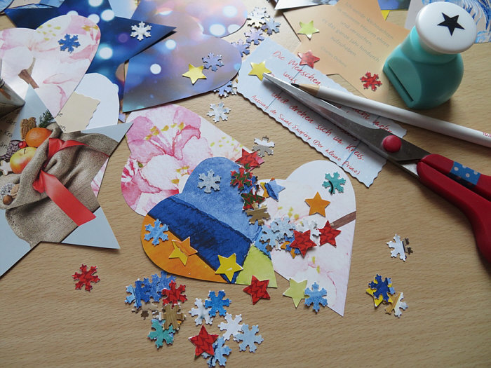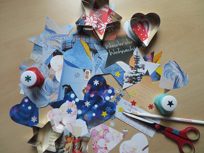 Mit Plätzchenausstechern und Papierstanzern werden aus den