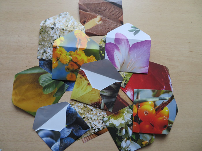 Aus den alten Kalenderblättern Briefumschläge basteln.