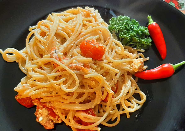 Nudeln mit Fetakäse und Tomaten