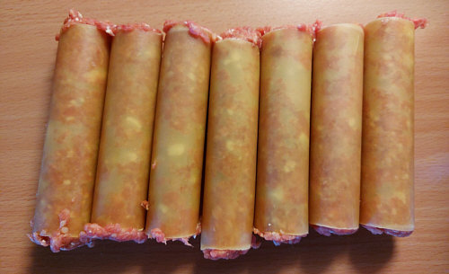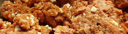 800g Hackfleisch gemischt (Saz, Pfeffer, Tomatenmark und Feta untermischen)