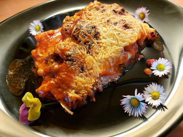 Bei 180 Grad ca. 30 Minuten im Ofen überbacken.