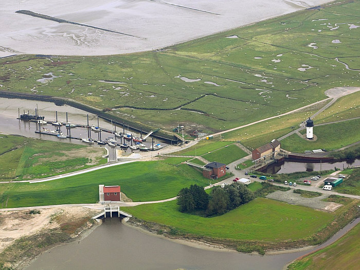 Dieses Leuchtfeuer, die "Dicke Berta", steht in Cuxhaven-Altenbruch an der