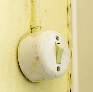 2. Lichtschalter mit schmalem Schalter und Leitung auf Putz
