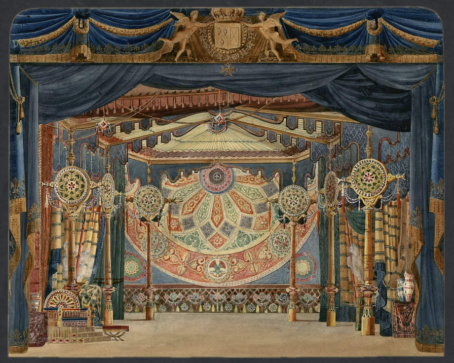 Pierre-Luc-Charles Cicéri (Frankreich) (1782–1868) - "Im Zelt Mahomets" ... Bühnenbild für den 2. Akt der Oper "Die Belagerung von Korinth" von Gioachino Rossini Deine Gedanken zu diesem Bild ? [Kommentieren]