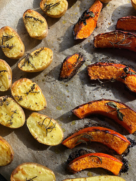 Kartoffeln und Kürbis aus dem Ofen
