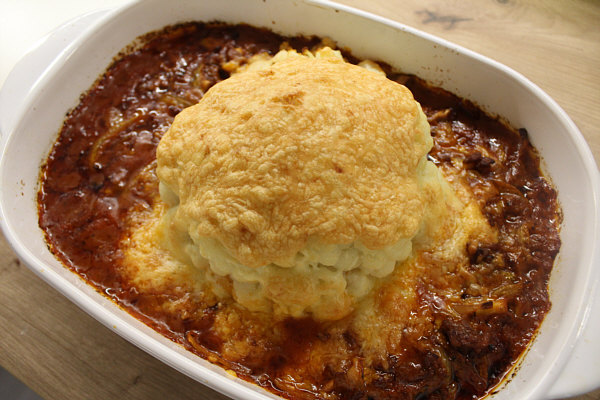 Im vorgeheizten Backofen (Ober/Unterhitze 200 °C) 30-35 Minuten überbacken.