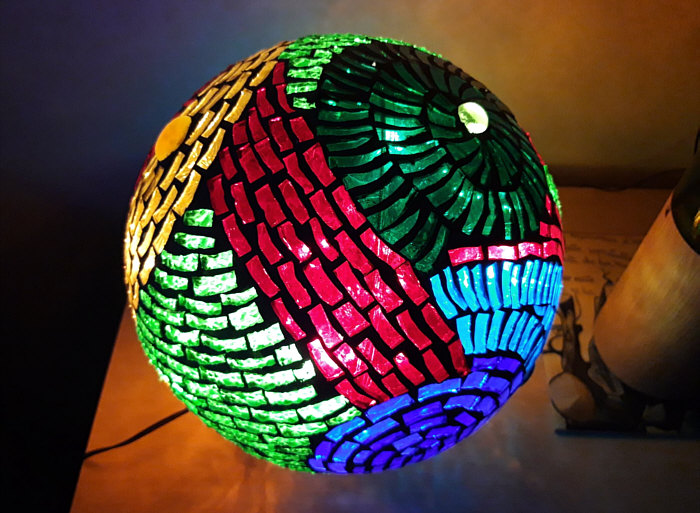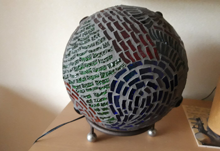 ... eine Glasmosaiklampe ... und schreibt folgendes dazu: