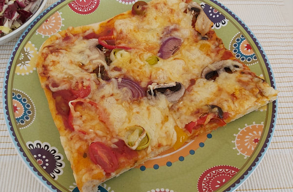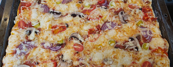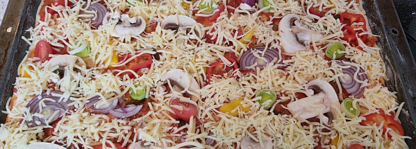Bei mir waren es Champignons, gelbe und rote Paprika, kleine Tomaten, Lauch,