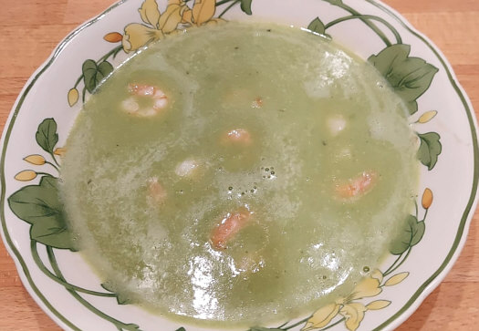 Garnelen in Olivenöl kurz gebraten und dann in die Suppe gegeben.