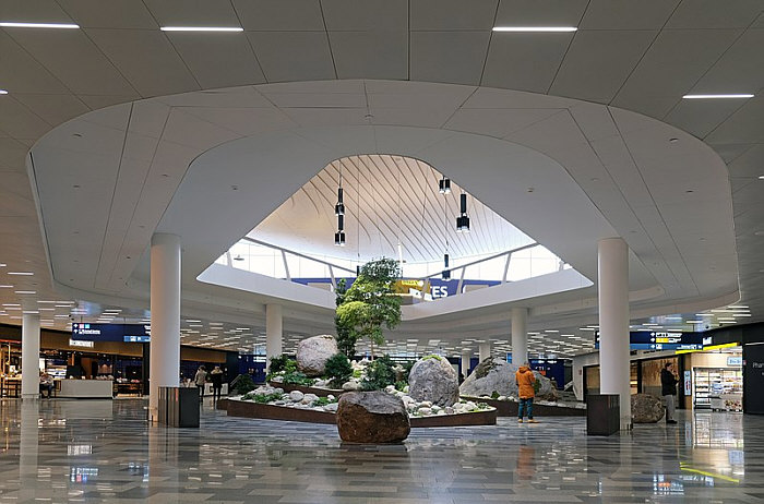 Wir sind in der Abflughalle des Flughafen Helsinki-Vantaa, 17 km von Helsinki