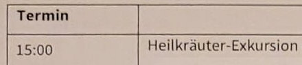 Oder wäre dir eine "Exkursion essbare Wildkräuter" lieber ?