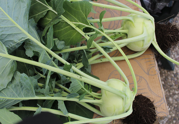 in der Zwischenzeit die Kohlrabi schälen und in mundgerechte Stücke schneiden.