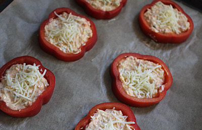 - Käsecreme in die Paprikaringe füllen