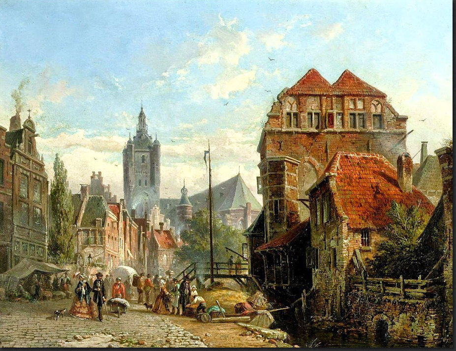 Adrianus Eversen (Niederlande) 1818-1897 - Niederländische Stadtansicht