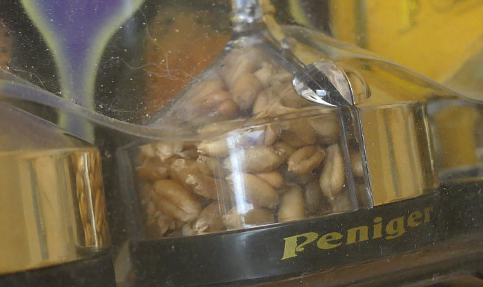Auf dem Anhänger sind drei Gefäße ... in dem ersten ist Hopfen ...