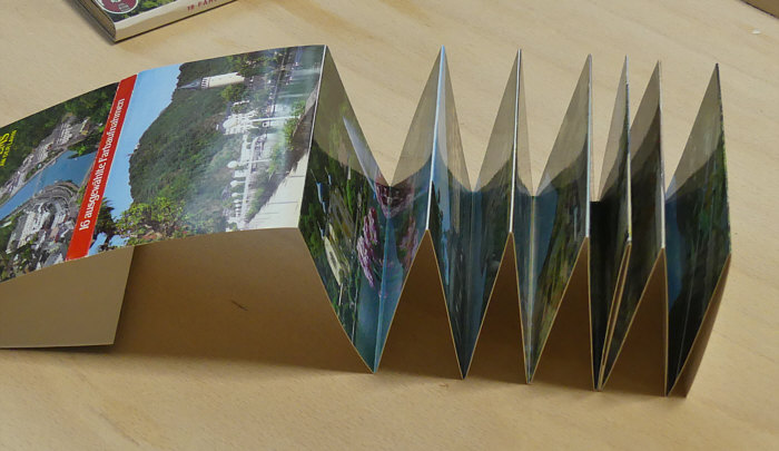 "faltbares Heft in Form eines langen Kartonstreifens, der ziehharmonikaartig