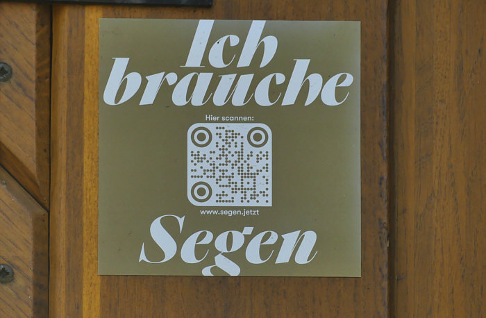 ... "ich brauche Segen" steht und ein Strichcode, der zu dieser