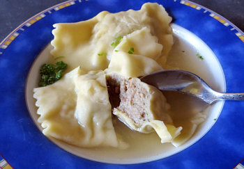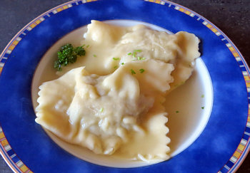 Innsbrucker Knoblauchsuppe - Palatschinken-Körbchen
