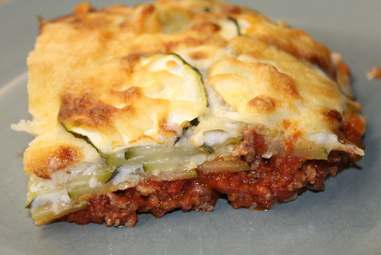 Kartoffel-Zucchini-Auflauf mit Hackfleisch und Käse-Bechamel