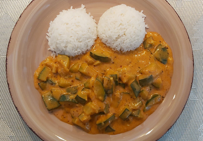 Zucchinigulasch mit Reis