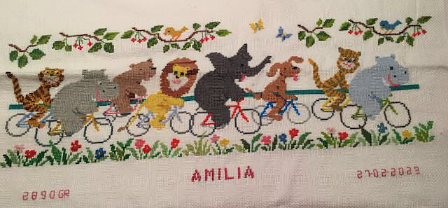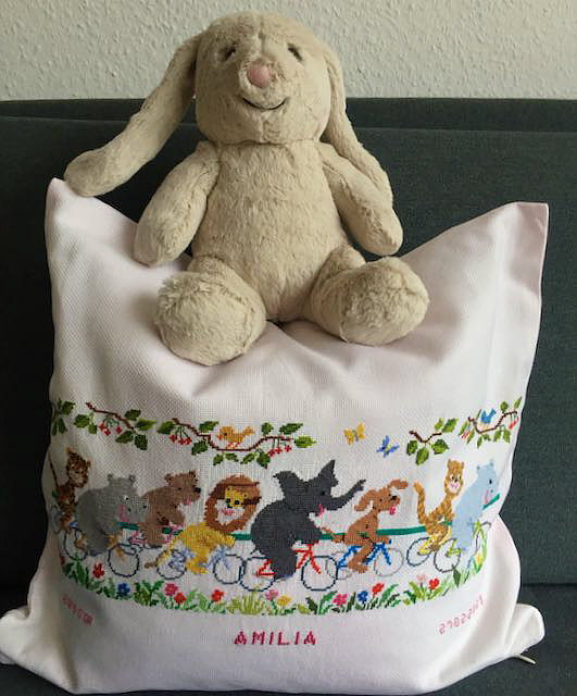und ich habe das Kissen mit den aktuellen Daten gestickt,