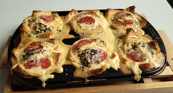 - Die Eimasse in die Toast-Muffin-Form füllen.