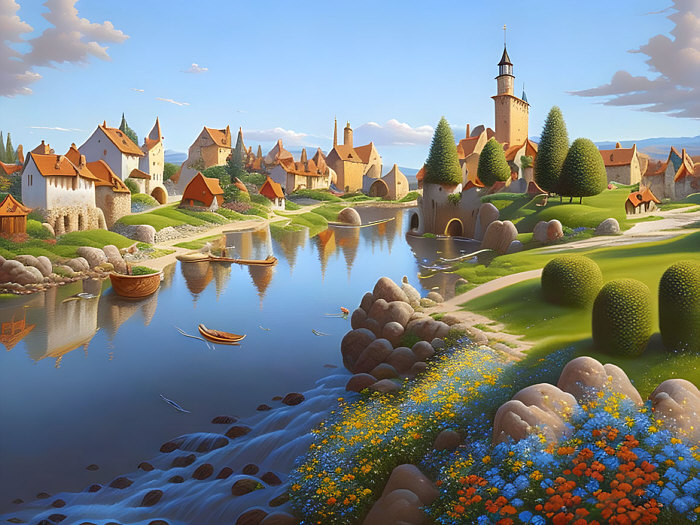 (Ergänzung: kleine mittelalterliche Stadt, sanfte Farben)