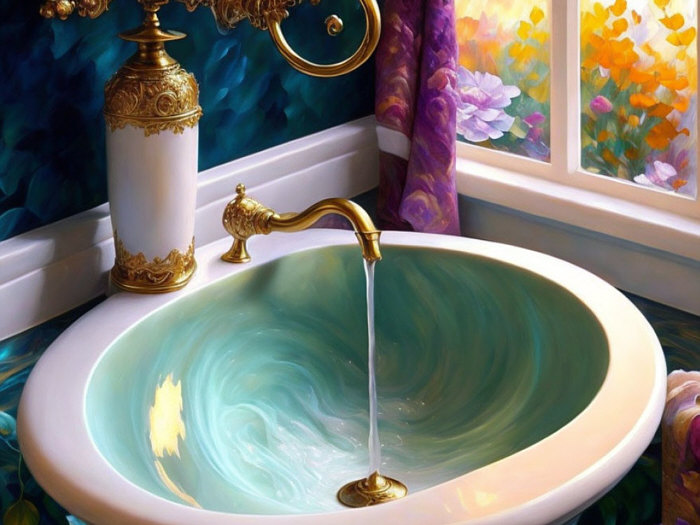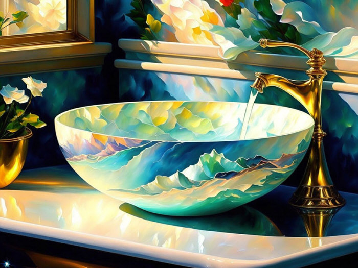 Die KI las das nämlich so: "Waschbecken mit einer Landschaft - mit Seifenblasen.